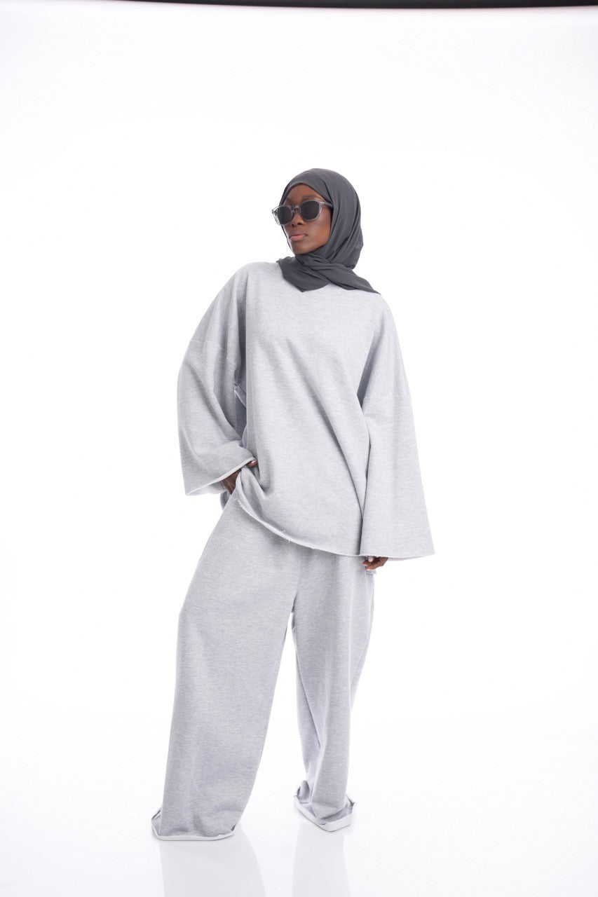 طقم رياضي رمادي فاتح من قطعتين - قطن ١٠٠٪