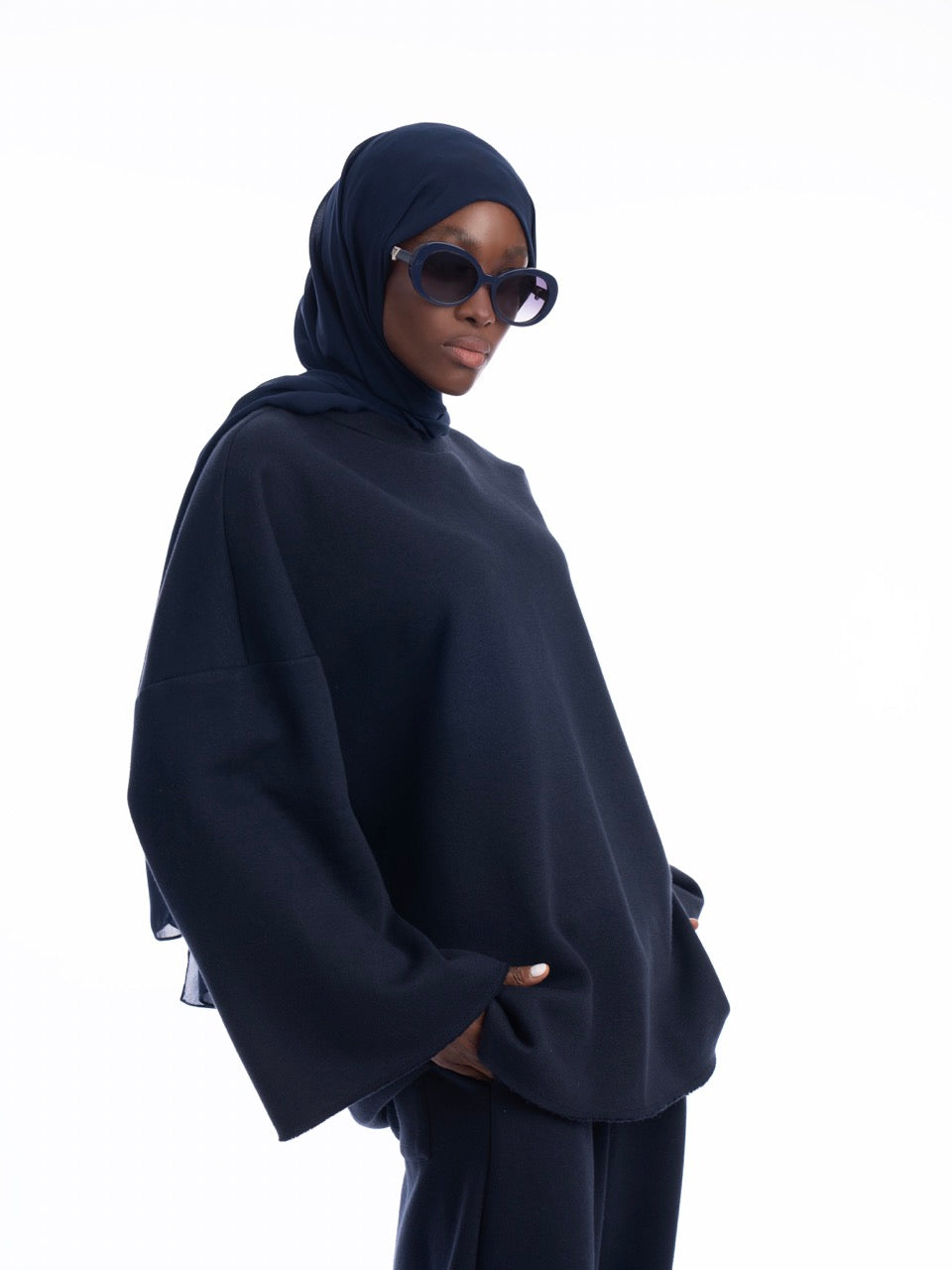 • بلوزة كبيرة الحجم بأكمام طويلة واسعة